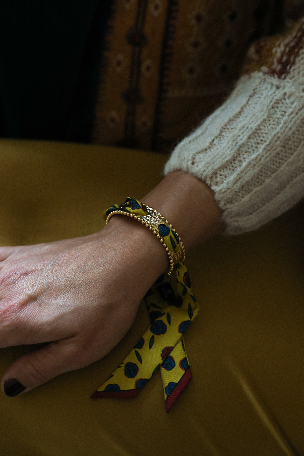 Ruban en soie de 2cm de hauteur, à porter seul au poignet, dans les cheveux, ou à tisser avec nos ornements ou dans nos manchettes.