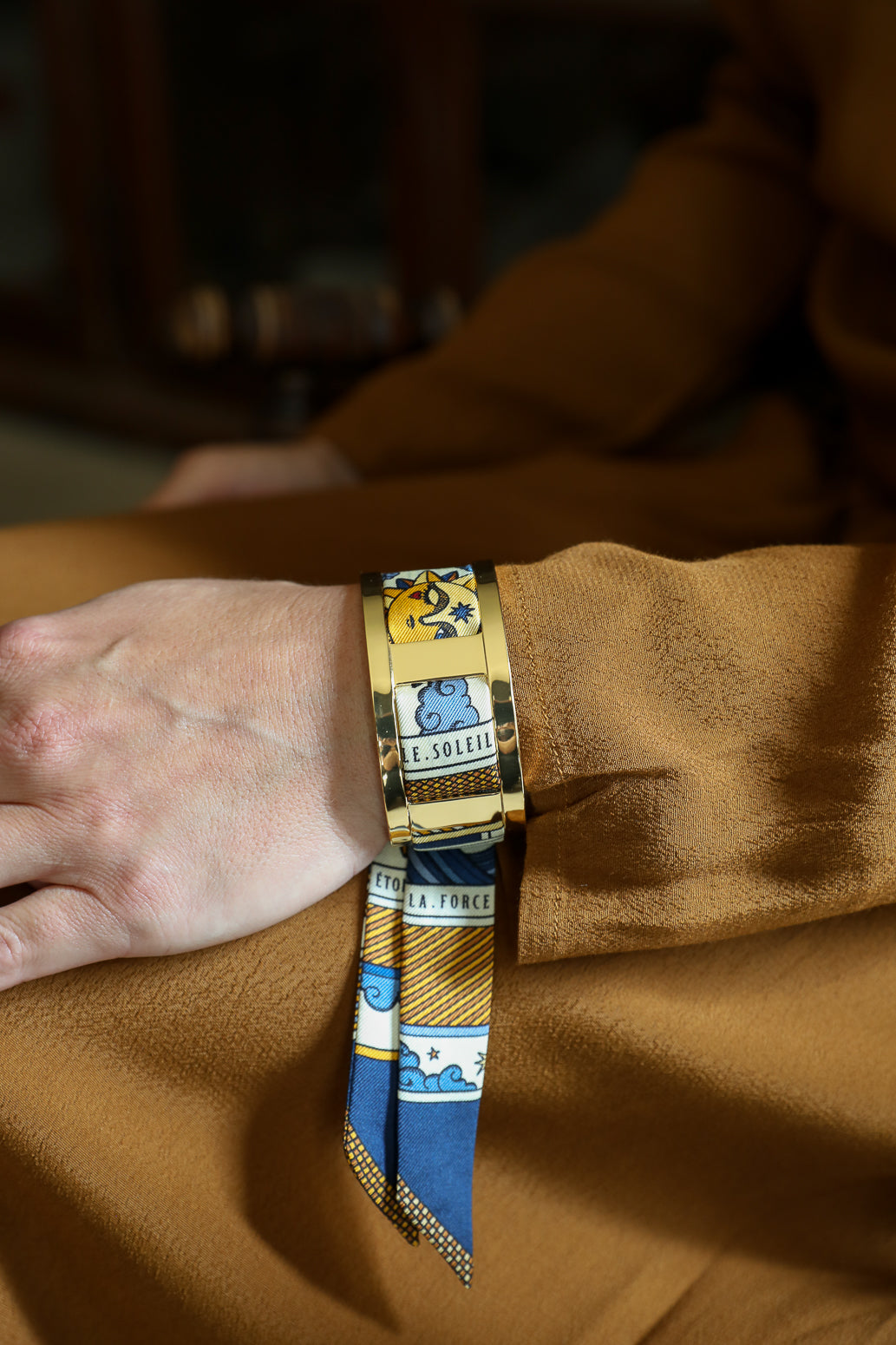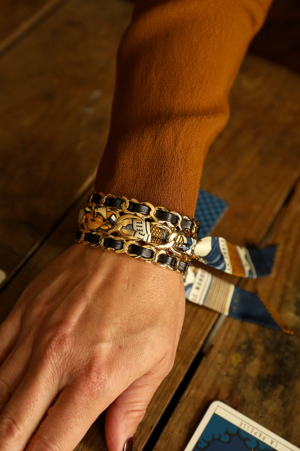 Ruban en soie de 2cm de hauteur, à porter seul au poignet, dans les cheveux, ou à tisser avec nos ornements ou dans nos manchettes.
